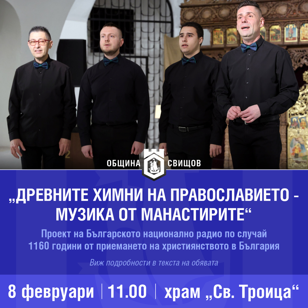На 8 февруари (неделя) от 11.00 часа, в храм „Св. Троица“ в Свищов ще се състои представяне на музикалния албум „Древните химни на православието – музика от манастирите“.