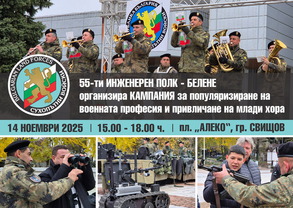 На 14 ноември 2025 г. от 15.00 до 18.00 часа на площад „Алеко” в Свищов ще се проведе кампания за популяризиране на военната професия и привличане на млади хора в нея.