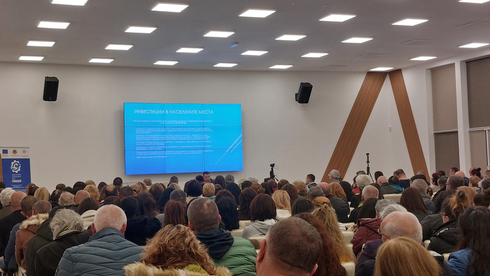 По време на организираното събитие беше излъчен близо 40-минутен видеофилм, по време на който в синтезиран вид бяха показани най-важните и значими дейности, реализирани през последната година на територията на община Свищов, които са следствие от целенасочените усилия на общинското ръководство за създаване на по-добра жизнена среда на населението. Гражданите имаха възможност да се запознаят с изпълнените проекти, с дейностите, които са в процес на изпълнение и тези, които предстоят да бъдат реализирани, като същевременно бяха информирани за финансовите параметри на проектите, и източниците за тяхното финансиране. Стана ясно, че през първата година от управлението на мандат 2023-2027 са привлечени инвестиции за близо 170 млн. лева, а през последната 2025 година тенденцията е продължила и средствата, които ще бъдат вложени в града и населените места на община Свищов вече надвишават 265 милиона лева. Бяха отчетени резултати по всички приоритетни дейности от Програмата за управление, като бе обърнато внимание и на добрите партньорства с различни ключови организации, националните и европейски институции.
