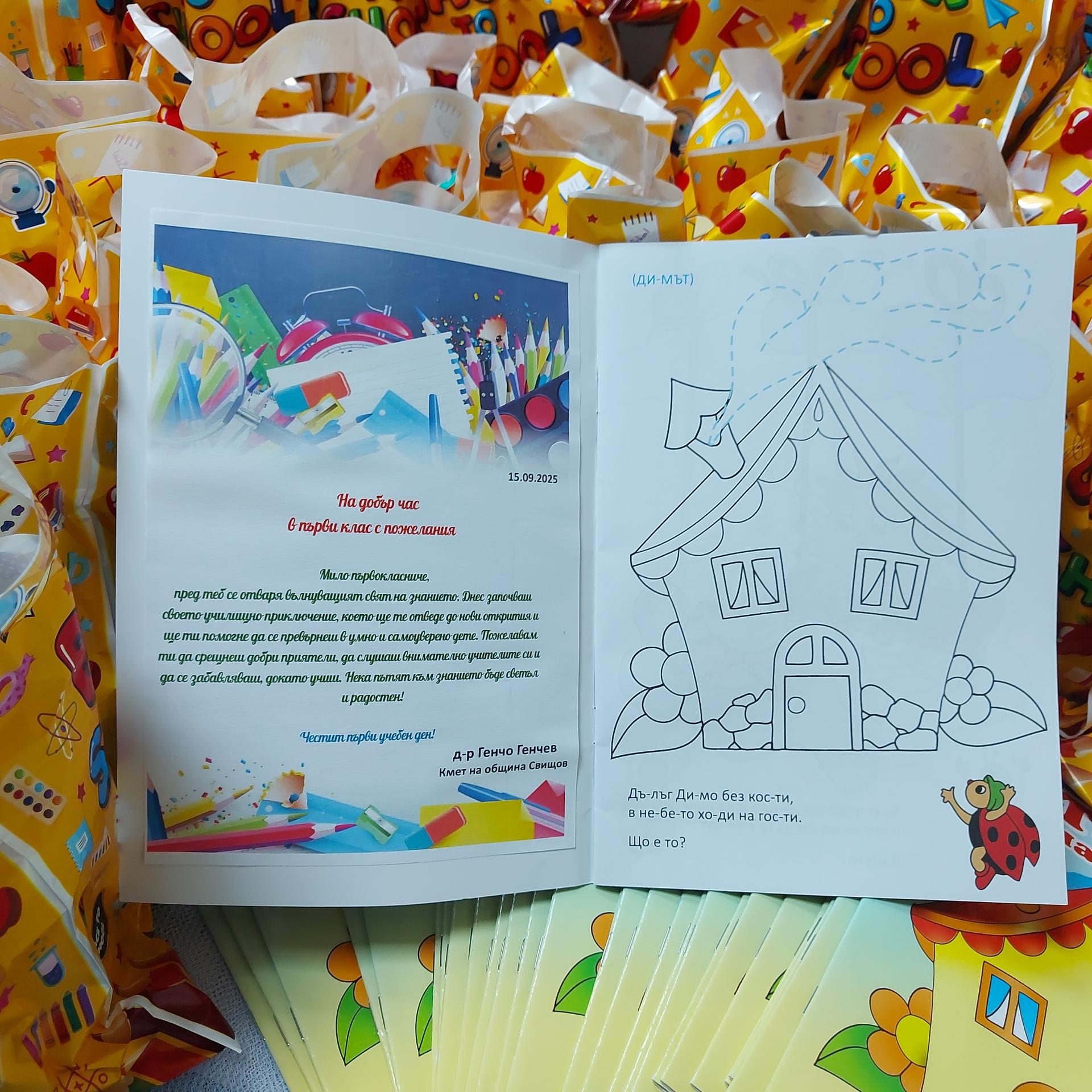 За да направят този ден още по-специален, Община Свищов и кметът д-р Генчо Генчев подготвиха специален подарък за всеки един от бъдещите ученици. Всички първокласници ще получат образователни книжки с лично послание и комплект учебни пособия, които ще им бъдат от полза в началото на техния училищен път.