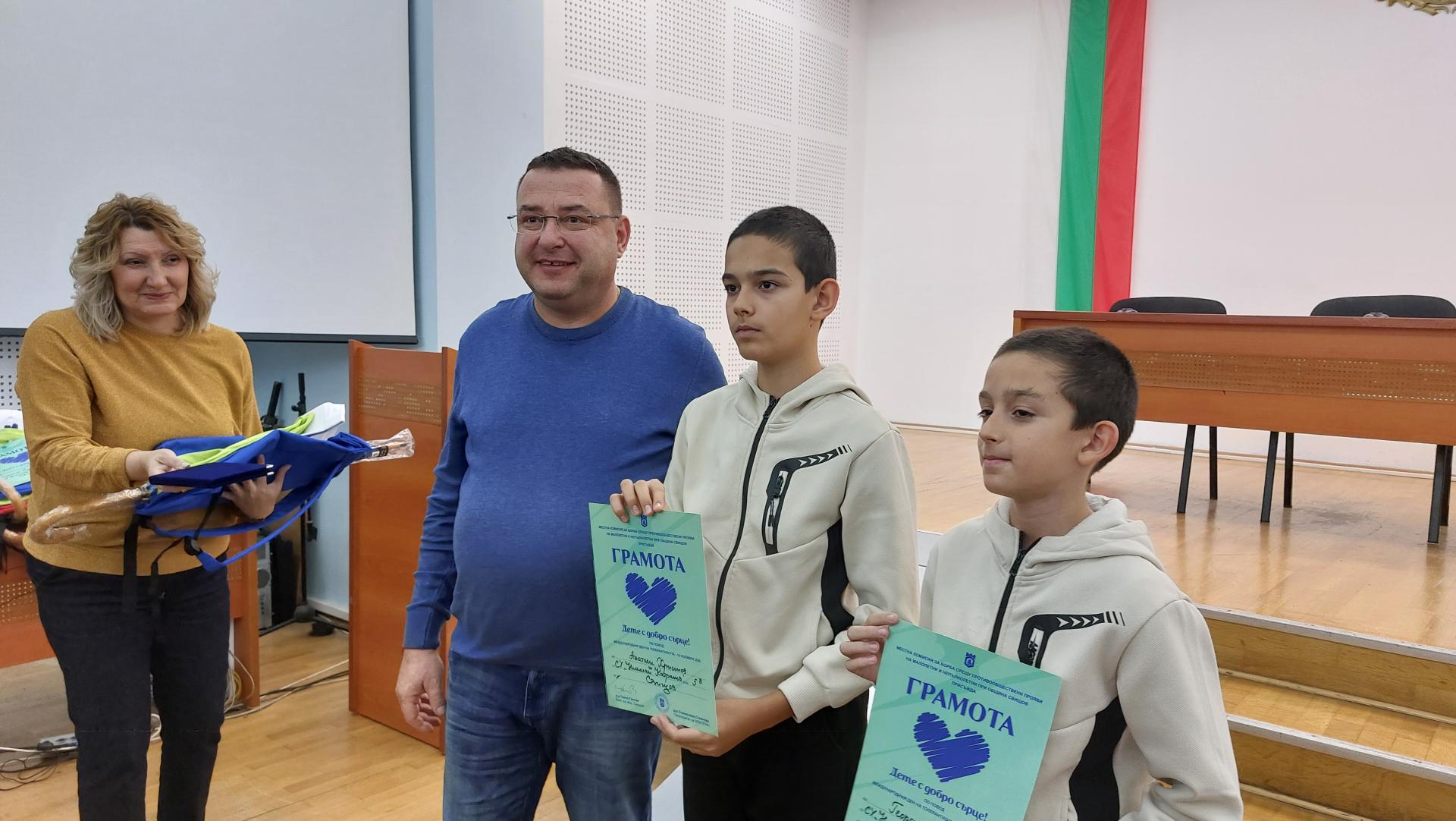 Местната комисия за борба срещу противообществени прояви в Свищов награди 32 деца с добри сърца