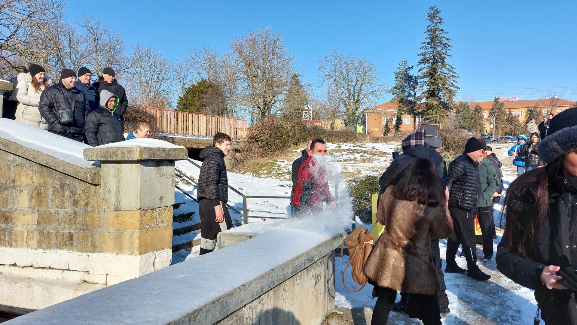 На обичая „Къпанки“ младоженецът Тома Савов бе окъпан за здраве в ледените води на чешмата в с. Царевец
