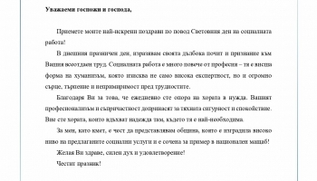 Уважаеми госпожи и господа,   Приемете моите най-искрени поздрави по повод Свет...