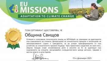 Община Свищов получи официално потвърждение за успешно участие в инициативата на Европейск...