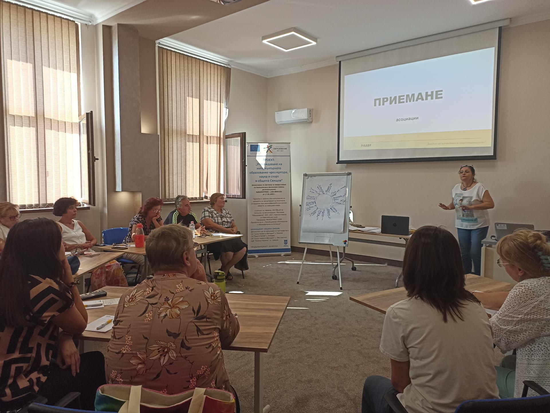 Община Свищов организира и проведе обучения на 39 специалисти по проект „Утвърждаване на интеркултурното образование чрез култура, наука и спорт в община Свищов“