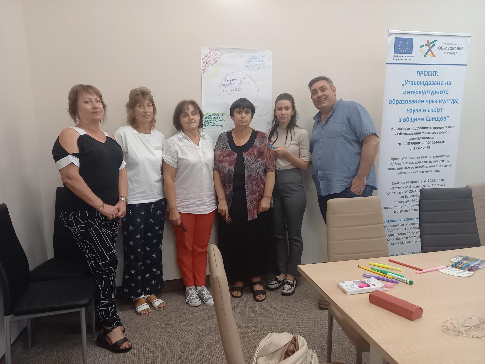 Проведените в рамките на два дни обучения са в изпълнение на планираната дейност 2 по проекта на Община Свищов, финансиран по ДБФП №BG05SFPR001-1.004-0044-C01 по приоритет 1 „Приобщаващо образование“ на Програма „Образование“ 2021-2027, процедура BG05SFPR001-1.004 „Утвърждаване на интеркултурното образование чрез култура, наука и спорт“.