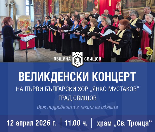 По традиция на Великден Първи български хор "Янко Мустаков" ще изнесе празничен концерт от 11.00 ч. в храм "Св. Троица".