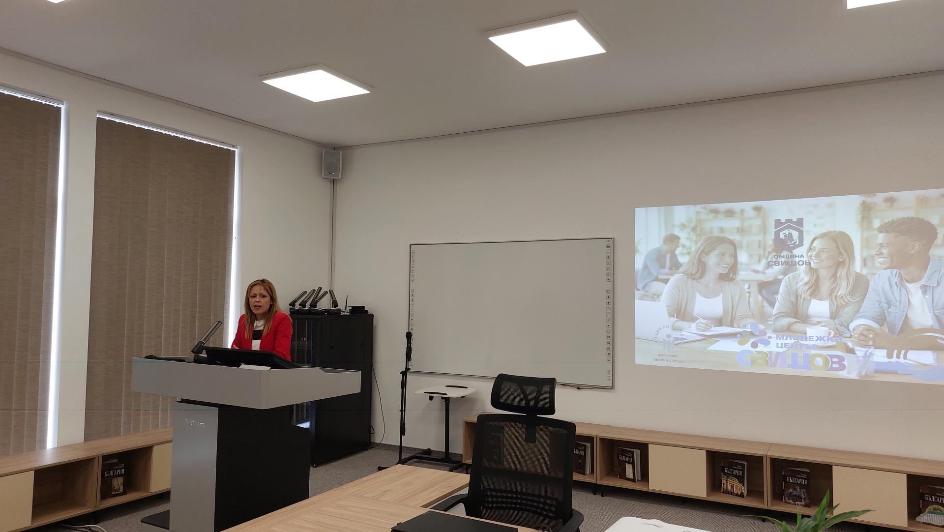 В рамките на приемната, модератор и домакин беше ръководителят на Младежки център – Свищов Кръстина Балева, която благодари на всички присъстващи за участието в полезната среща и призова младите хора в залата да бъдат активни, да питат всичко, което ги интересува за тяхното развитие и да са отворени за нови възможности. Тя сподели личната история за професионалната си реализация, като подчерта, че началото на нейния трудов път е започнало от Дирекция "Бюро по труда", където се е информирала за конкурс, обявен от Община Свищов, на който се е явила и е спечелила. С тази история тя вдъхнови младите хора да бъдат активни и да вярват в своите възможности, защото животът е пред тях и те са бъдещето на нашата страна.
