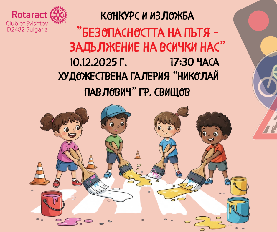 На 10 декември 2025 г., от 17:30 ч., в Художествена галерия „Николай Павлович“ – Свищов, ще се проведе награждаването на отличените участници в конкурса „Безопасността на пътя – задължение на всички нас“.