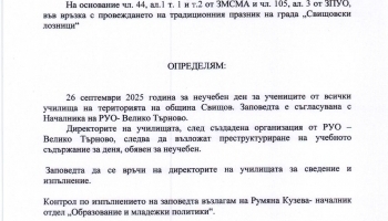 З А П О В Е Д №1402-РД-01-03 гр. Свищов, 25.09. 2025 г.  ...