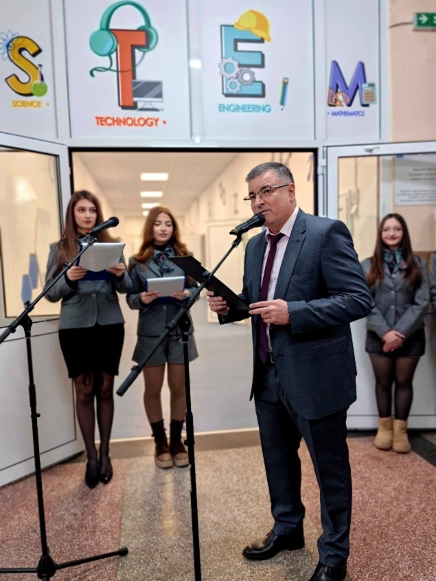 „Днес ние не просто откриваме нови кабинети и прерязваме лентата на един модерен център за обучение. Днес ние сбъдваме една наша мечта и отваряме врата към бъдещето. Този център е плод на стремежа ни да дадем на нашите ученици най-ценното: не просто знания, а умения, с които да управляват утрешния свят.“, заяви в приветствието си към присъстващите директорът на училището г-н Генади Иванов и благодари на всички, допринесли за изпълнението на проекта.